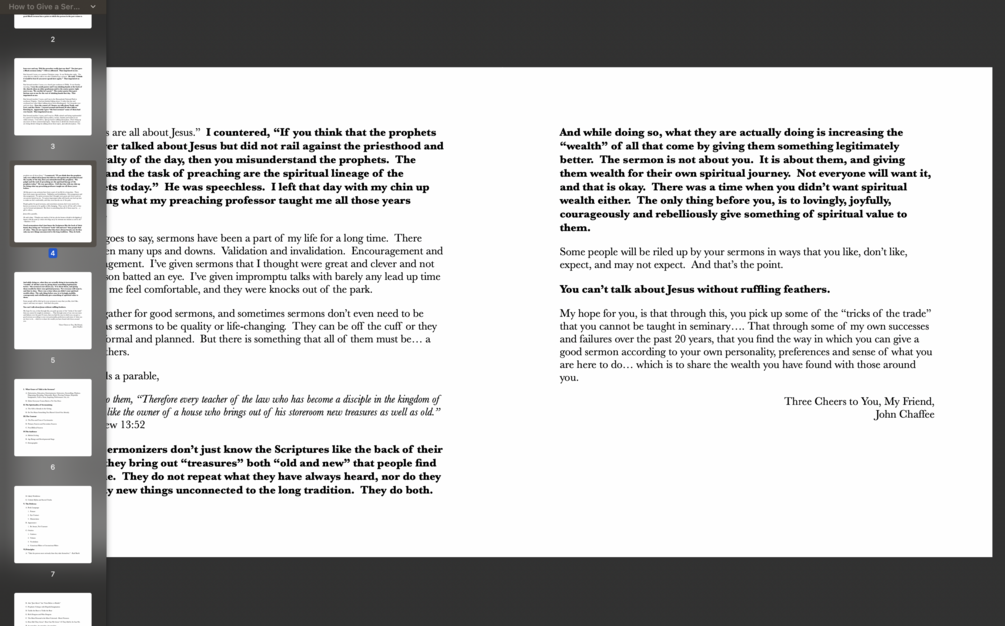 Over 20 years of giving sermons in churches, on retreats, at camps, to kids and adults and teenagers and professionals and farmers and more... I have learned a few things from my own mistakes and successes, things that I could only learn by experience and not in the classroom. Why not pass onto you some of the "tricks of the trade" that can help you to give better sermons to your people?